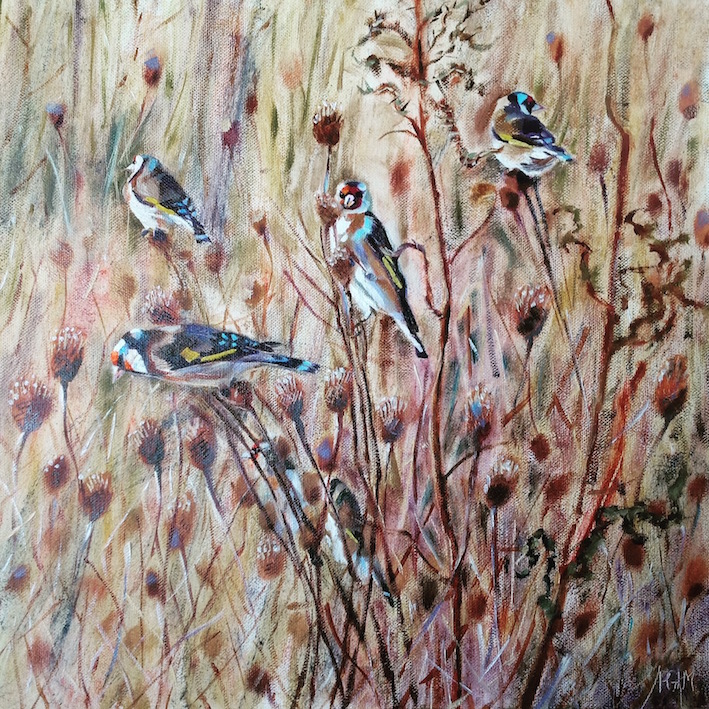 New work: Goldfinches April 9, 2017April 24, 2017 | philippamitchellartist Goldfinches, oil on canvas, 40 x 40cm. I have added some images of my new work onto the various gallery pages of this website if you would like to take a look.