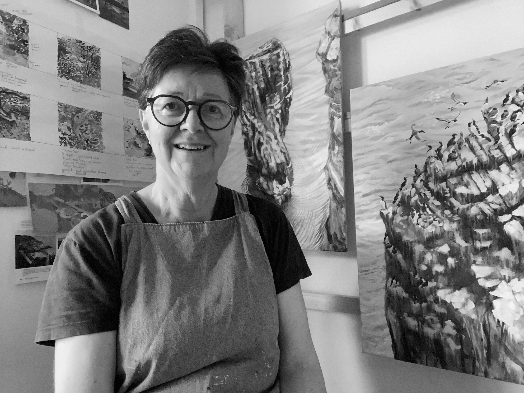 Inspired by observations and my impressions of specific places, I aim to convey my passionate interest in the natural environment and wildlife in my paintings. My work tells a story or records a moment that I have experienced. I have been lucky to have lived and worked in several wild and beautiful places around the UK including the Highlands of Scotland, the Fife coast, Gloucestershire Cotswolds, the Norfolk fens, and now West Wales. My husband is a bird ecologist, so we have migrated between bird hotspots. I was until recently based in the East Neuk of Fife, near St Andrews. Now we are living, and I am painting, in Pembrokeshire. I have a whole new beautiful landscape to discover on my doorstep.