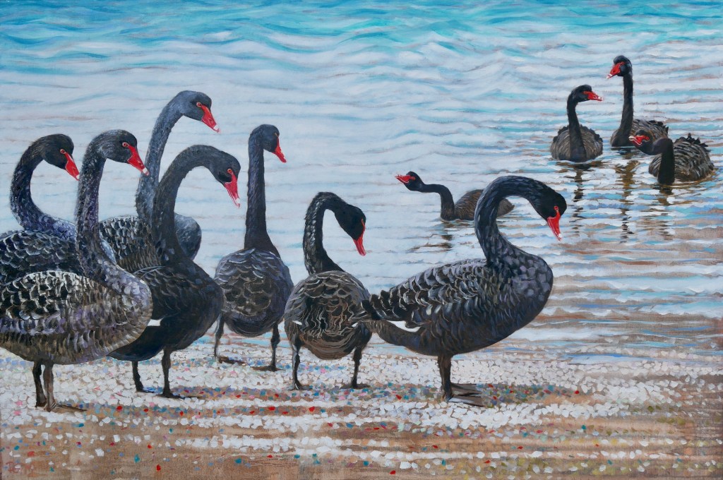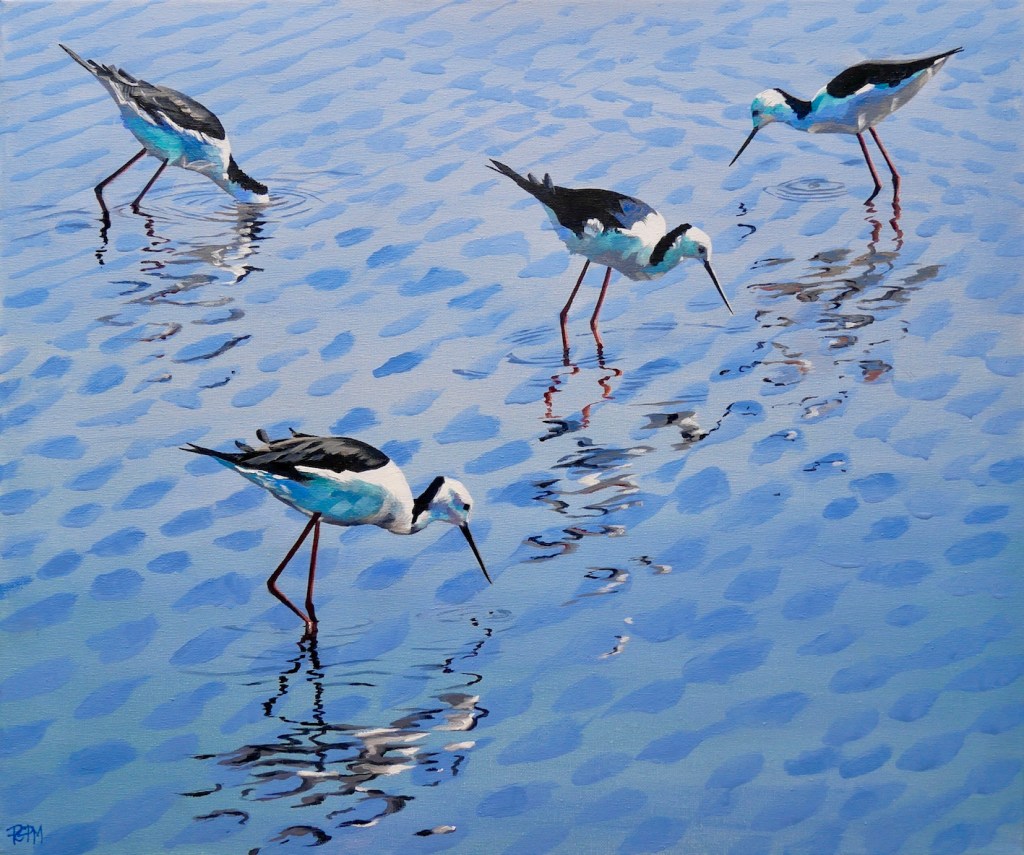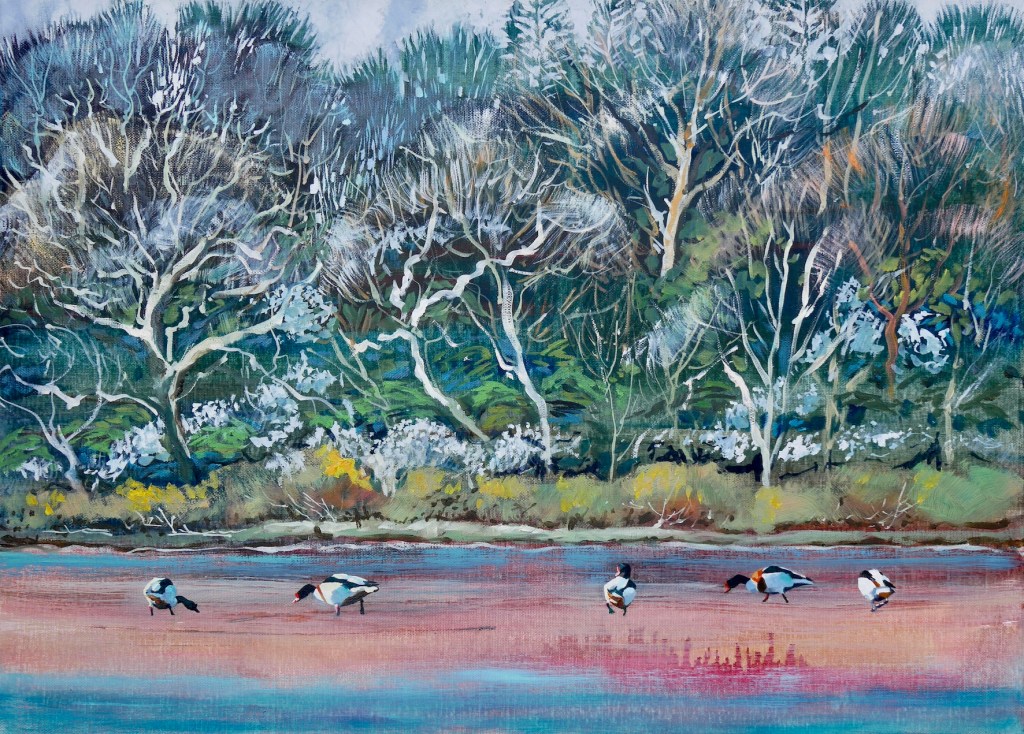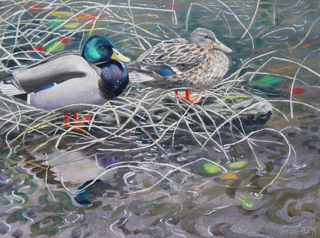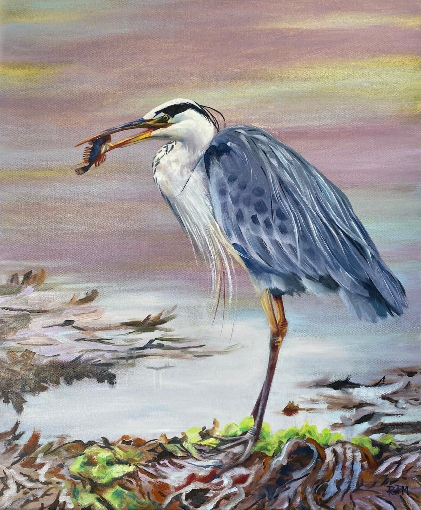 Many of my paintings feature birds. I have a bird ecologist husband and have lived on several nature reserves, close to birds. I find birds quite fascinating, mysterious and in a way, a symbol of freedom as well as representing the fragile nature of the planet. All of the birds I paint, have been observed in the field, sketched, filmed and photographed for reference before painting. Please see the paintings in my Oil Gallery and Watercolour Gallery, which you will find in the menu (above right.)
